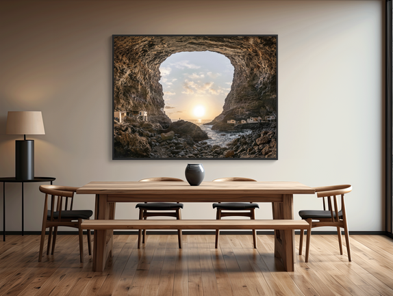 Ein Zufluchtsort für Träumer - Die bewohnte Höhle auf La Palma erwacht zum Sonnenuntergang in leuchtenden Tönen zu neuem Leben. Diese magische Szenerie fängt die Essenz eines perfekten Zufluchtsorts ein, fernab vom hektischen Alltag.
